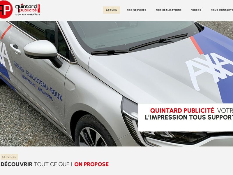 Située au Tallud, à proximité de Parthenay, Quintard Pub est une entreprise spécialisée dans la communication visuelle et la publicité. Forte d’une expérience reconnue dans le domaine, elle accompagne entreprises, collectivités et particuliers dans la création et la réalisation de leurs supports de communication. De la conception graphique à l’impression, en passant par la pose d’enseignes, la signalétique, le covering de véhicules ou encore la fabrication de banderoles et panneaux, Quintard Pub propose des solutions sur mesure, adaptées aux besoins de chaque client. Réactive, créative et ancrée dans son territoire, l’équipe met un point d’honneur à offrir un service de qualité, avec un suivi personnalisé à chaque étape du projet.